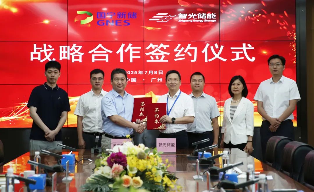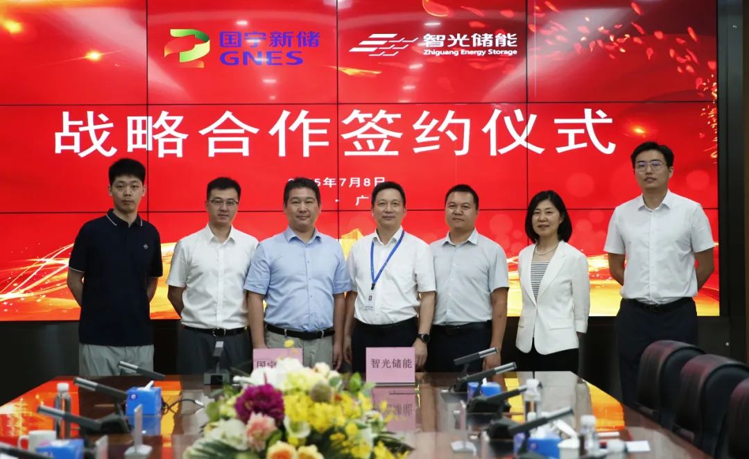 7月8日,广州智光电气股份有限公司总裁兼广州智光储能科技有限公司董事长姜新宇,智光储能总经理付金建等领导与国宁新储(福建)科技有限公司总经理江博一行会面交流,双方签署战略合作协议。