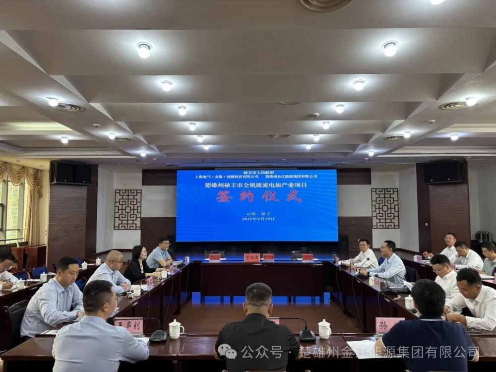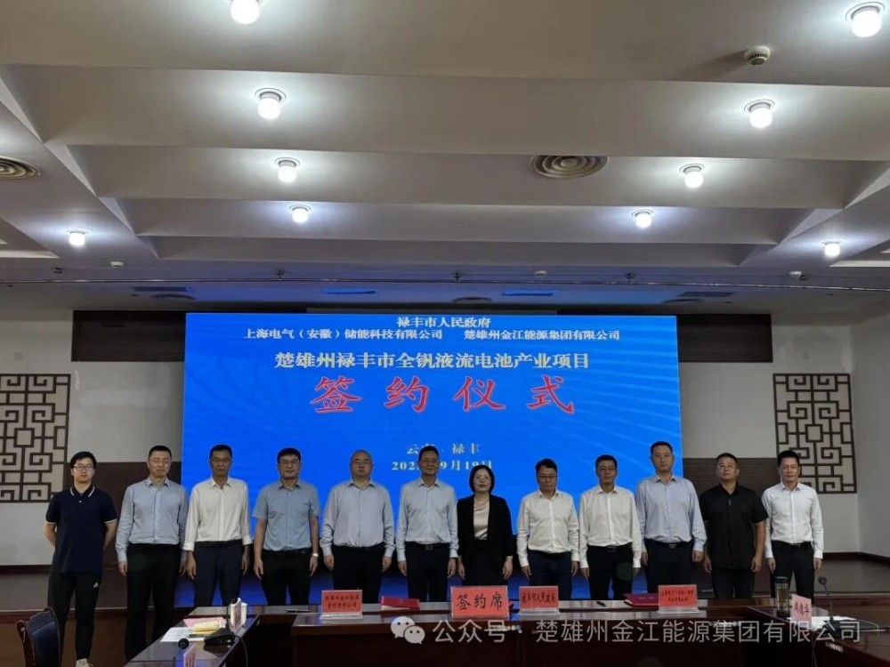 9月19日,集团与禄丰市人民政府、上海电气(安徽)储能科技有限公司在禄丰市签署全钒液流电池产业项目合作协议。