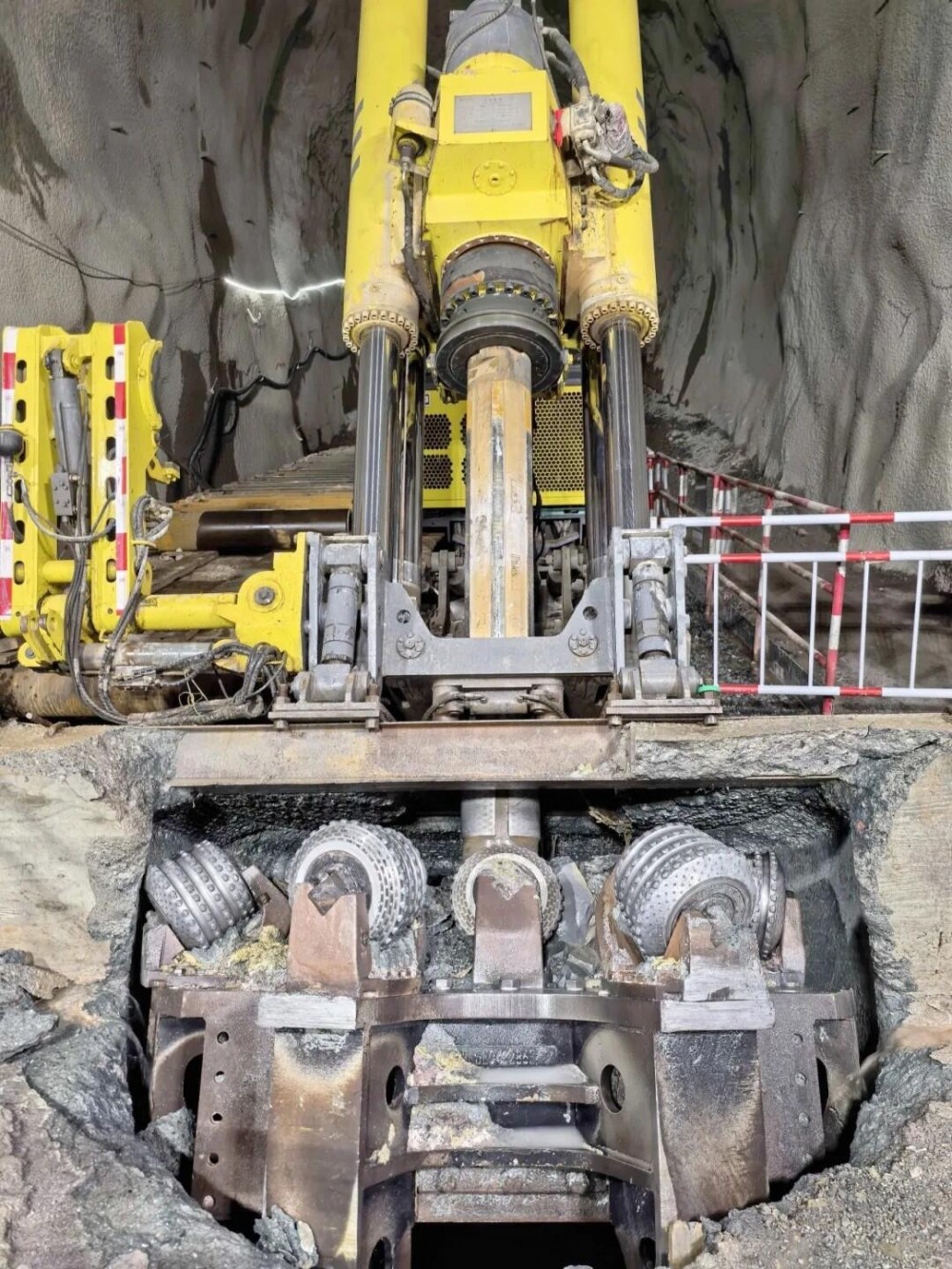 9月23日10点58分,随着反井钻机反拉钻杆缓缓转动,重达数吨的反井钻钻头破岩而出,九峰山抽水蓄能电站3#引水上斜井导井反拉顺利完成,标志着电站输水发电系统上斜井段3条导井施工全部完成!