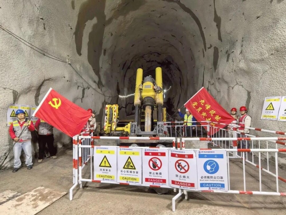 面对诸多挑战,九峰山公司充分发挥党建引领作用,联合参建各方创新推行“党建+”模式,迅速组建“九峰筑能”党员突击队。党员干部主动亮身份、扛责任,在急难险重任务中冲锋在前、以身作则,带动建设、设计、监理、施工四方形成“四位一体”的攻坚合力。通过成立党员技术攻关小组,实施全周期技术策划与精益化施工组织,开展多轮次施工方案论证及资源优化配置,构建起“党员责任区+技术攻坚”双核驱动机制。截止9月23日,成功实现三条引水上斜井导井精准贯通,成功攻克上斜井导井反拉技术难关,不仅为后续斜井扩挖施工奠定坚实基础,也为电站下斜井施工提供了重要技术支撑与示范样本。