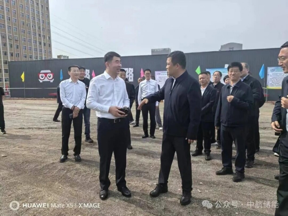 开工当日,阳泉市领导、平定县领导一行亲临项目现场,中航储能董事长陈铭对项目规划、技术优势及建设进展等进行了汇报。领导们对项目的前期准备工作给予了高度肯定,并指出,该共享储能电站是平定县积极践行国家“碳达峰、碳中和”战略的关键举措,对优化区域能源结构、保障电力安全、促进可再生能源消纳具有里程碑式的意义。他们要求各相关部门全力配合,确保项目高标准、高质量、高效率推进,力争早日建成投产,造福地方百姓。