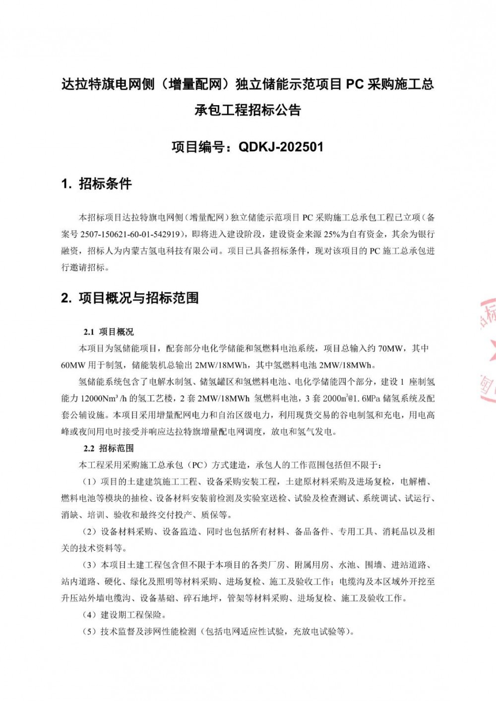 9月29日,达拉特旗电网侧(增量配网)独立储能示范项目PC采购施工总承包工程招标公告发布。