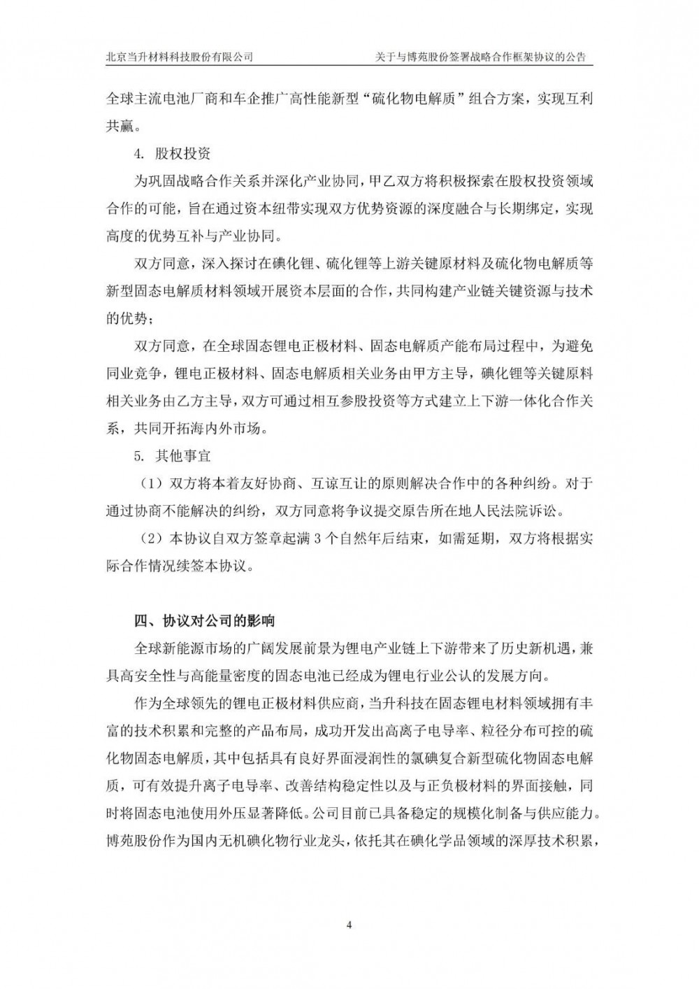 10月15日,当升科技发布公告称,公司与山东博苑医药化学股份有限公司于2025年10月15日签署《战略合作框架协议》。为充分发挥各自优势,经友好协商,双方一致同意在固态锂电材料技术合作开发、产品供应、市场推广、股权投资等领域建立长期、全面、稳定的战略合作关系。