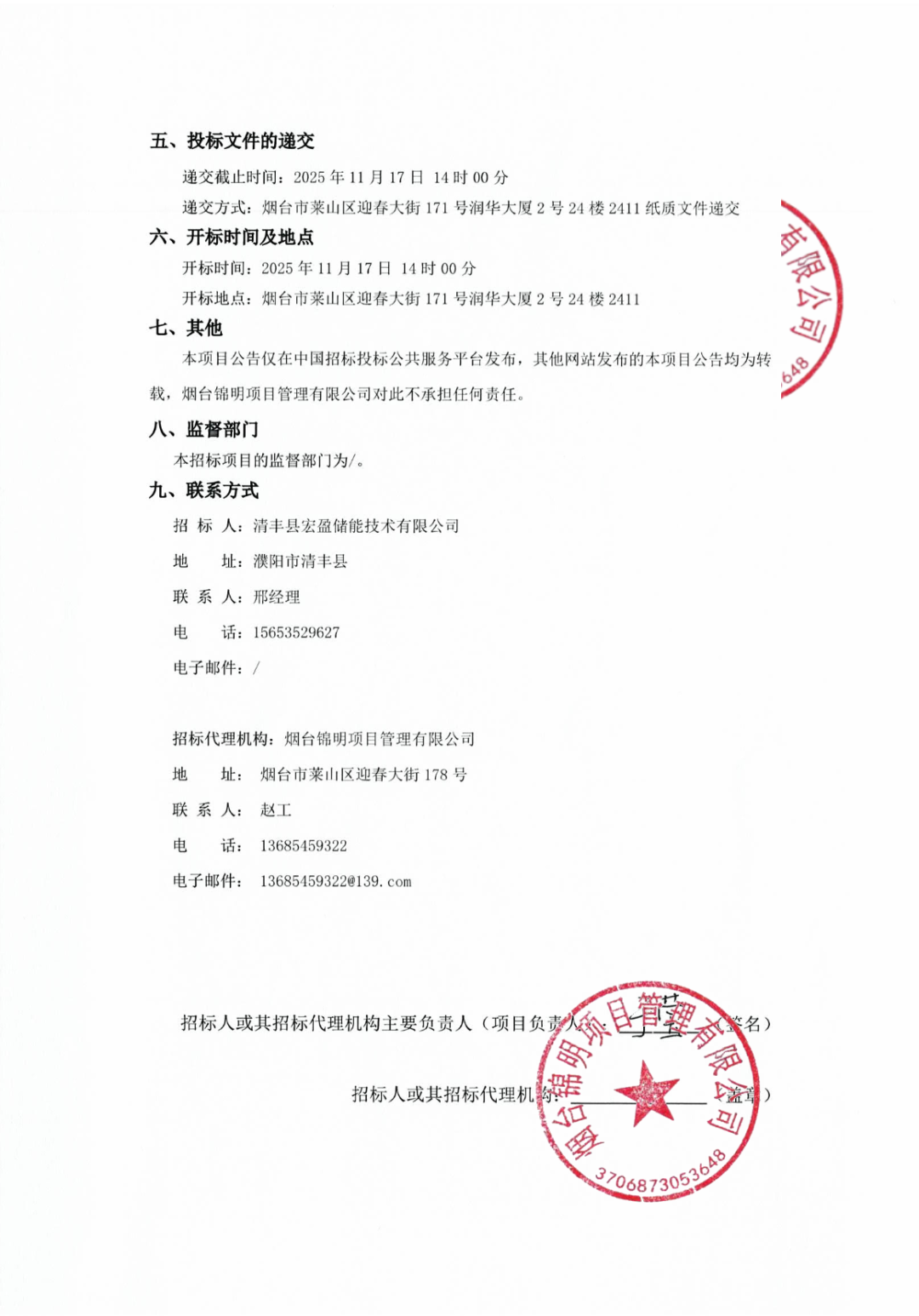 电力家获悉,10月25日,清丰县宏盈100MW/400MWh储能电站项目工程总承包(EPC)公开招标公告发布。