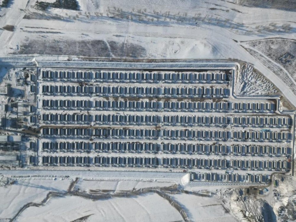 该项目位于内蒙古自治区呼伦贝尔阿荣旗,是目前全国投运容量最大的构网型储能项目。配套800台电池舱、200台PCS舱,通过2回220千伏架空线路接入阿荣旗500千伏变电站,构建起“电源调节、电网支撑、负荷响应”一体化能源调节体系。