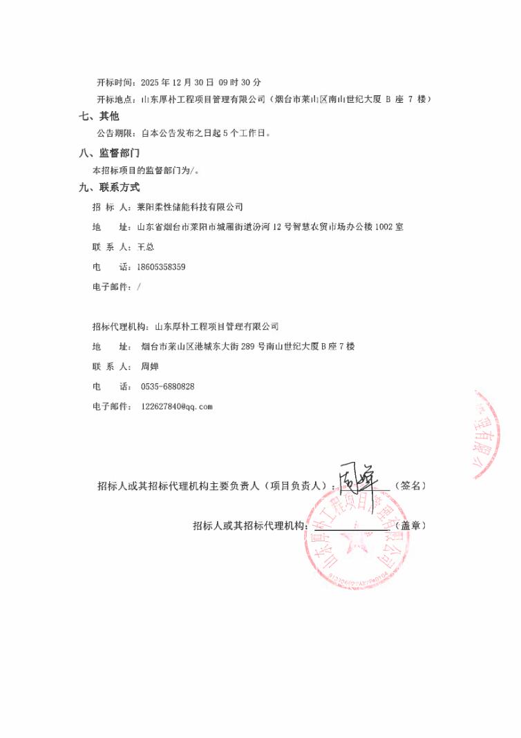 12月10日,莱阳柔性储能科技有限公司莱阳市大夼镇500MW/1GWh电网侧独立共享储能电站EPC+O项目公开招标公告发布。