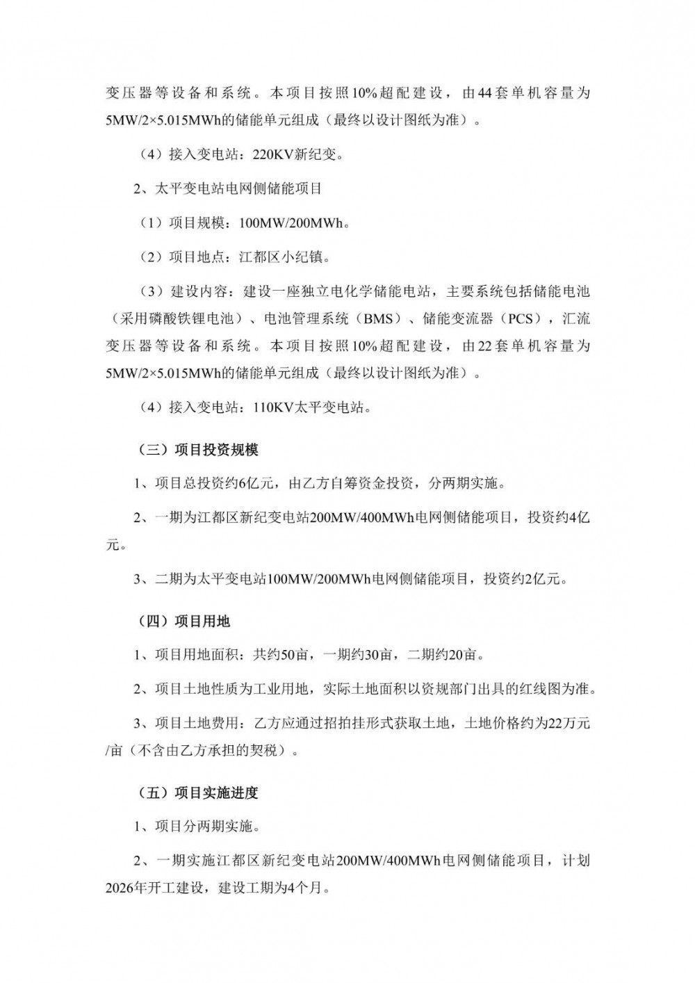 12月10日,武汉天源发布公告称,公司控股子公司武汉天源能源有限公司与扬州市江都区小纪镇人民政府拟就投资建设“江都区新纪变电站200MW/400MWh电网侧储能项目”、“太平变电站100MW/200MWh电网侧储能项目”签署《投资协议》,前述两个项目总投资约6亿元。