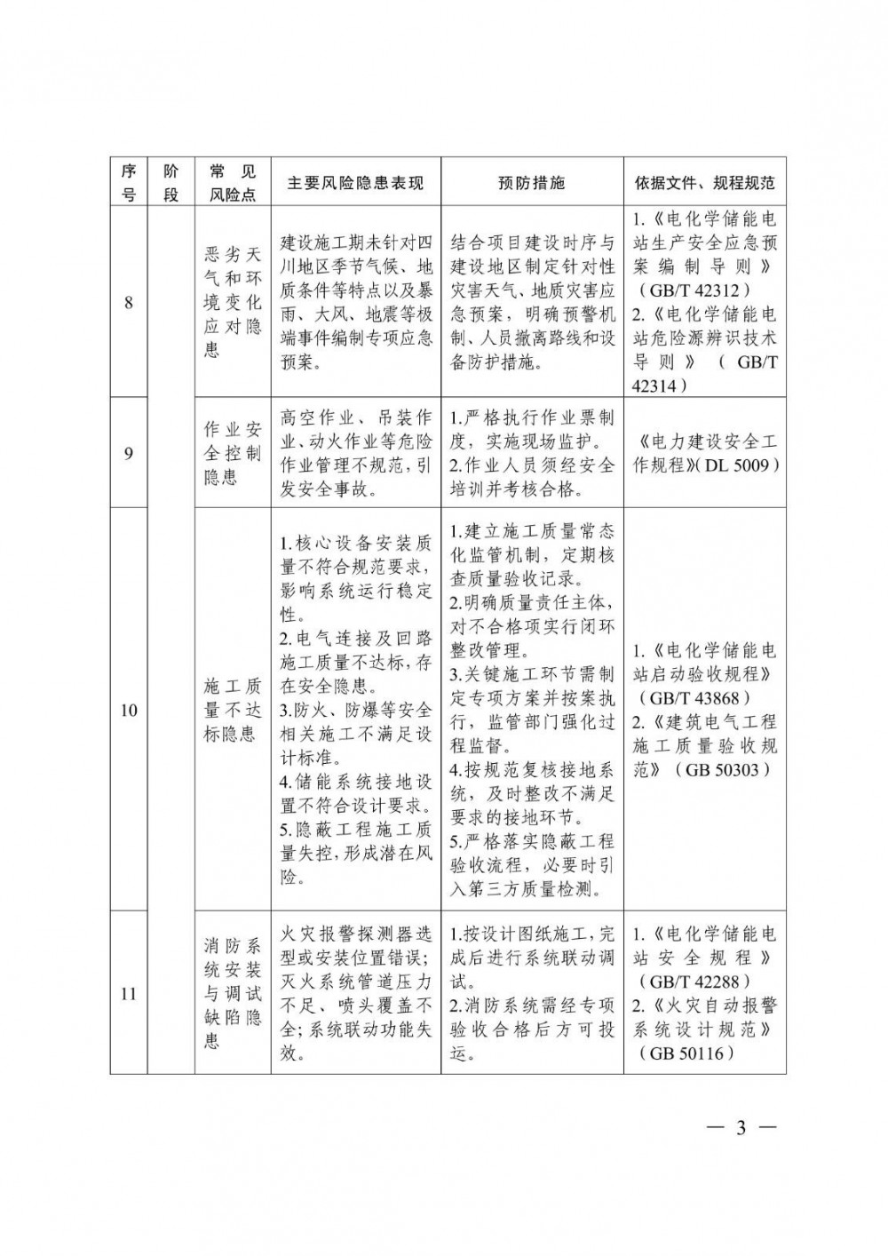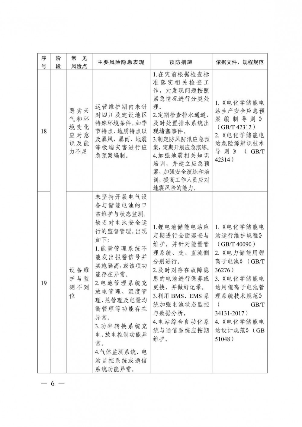 12月11日,四川省能源局发布关于做好电化学储能电站安全管理工作的通知,提到,共有22条电化学储能电站安全隐患风险研判指南,涵盖了从规划采购期-建设施工期-运营维护期-退役处置期四大方面。
