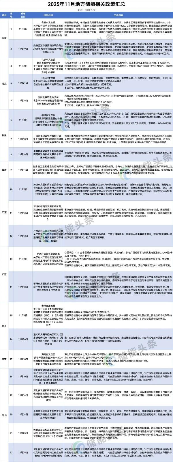 电力家获悉,2025年11月国家及地方共发布储能相关政策81条!