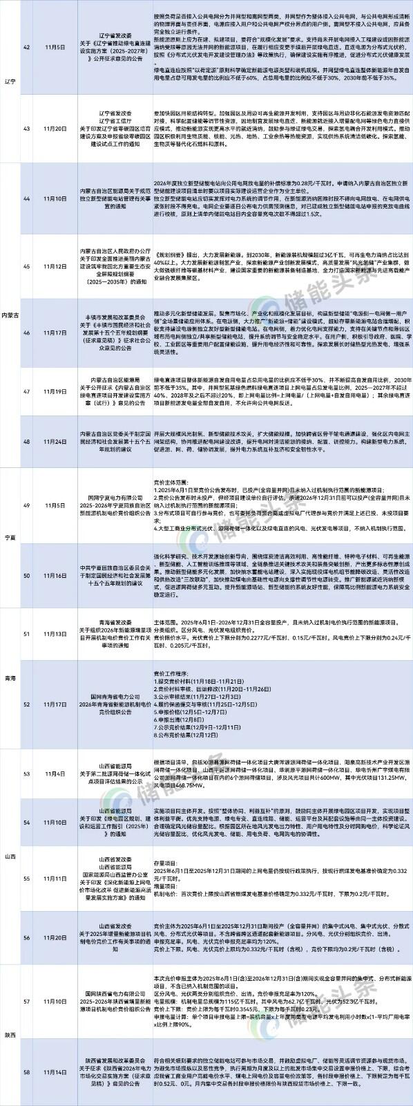 汇总的政策包括了各地新能源上网市场化改革、机制电价竞价结果、储能补贴政策、各地“十五五”规划、电价与市场交易以及产业相关政策等。