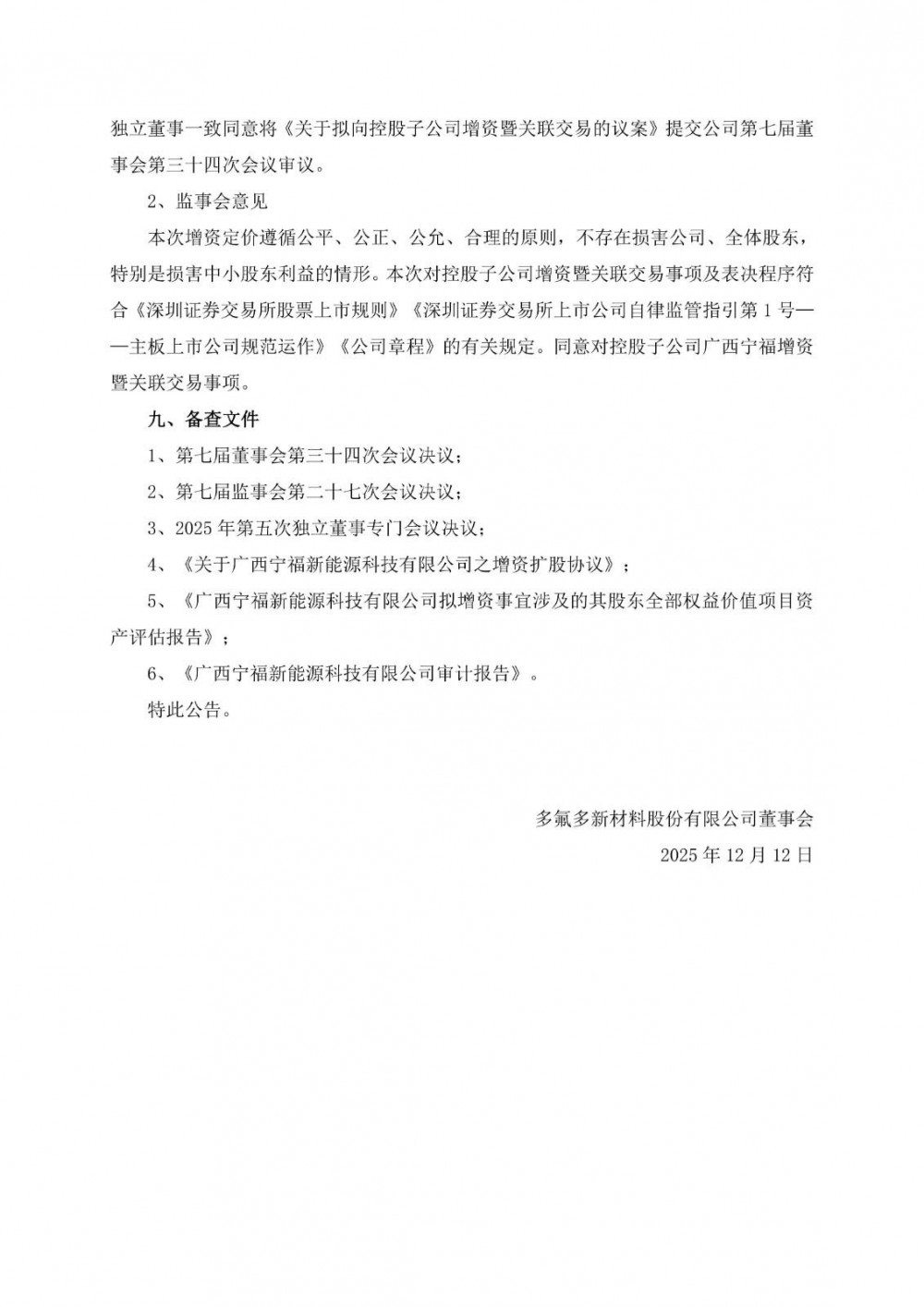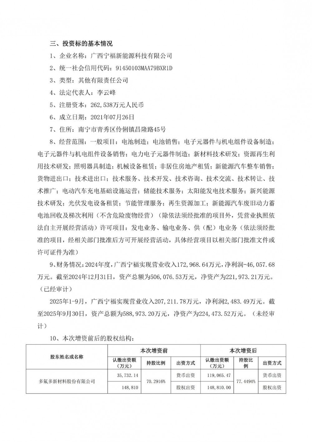 12月11日,多氟多发布公告称,公司召开第七届董事会第三十四次会议,审议通过了《关于拟向控股子公司增资暨关联交易的议案》,同意公司控股子公司广西宁福新能源科技有限公司新增注册资本83,333.33万元,注册资本由262,538万元变更为345,871.33万元。
