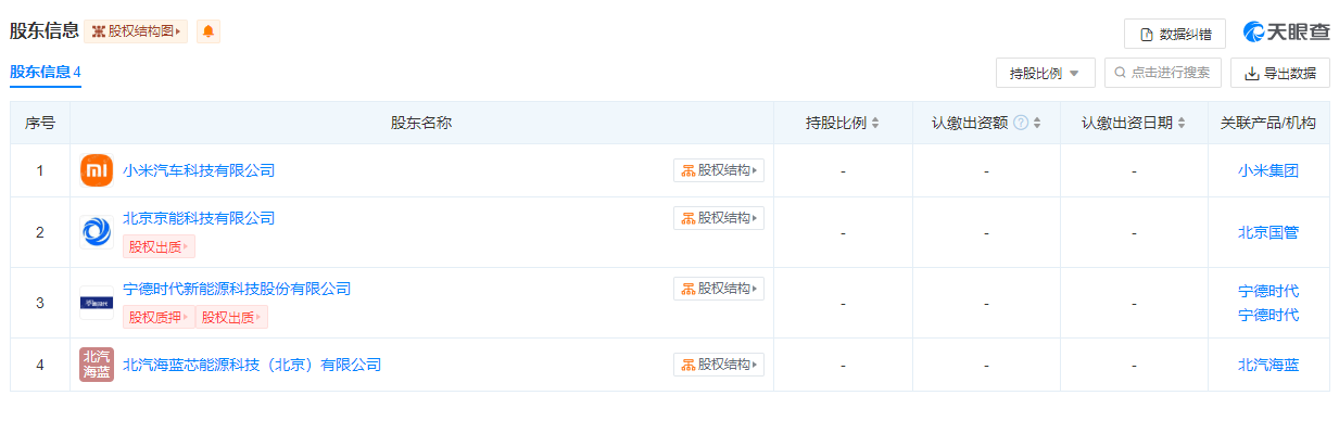 发布时间:2024-05-20 人气: 来源:天眼查 关键词:小米,宁德时代,动力电池