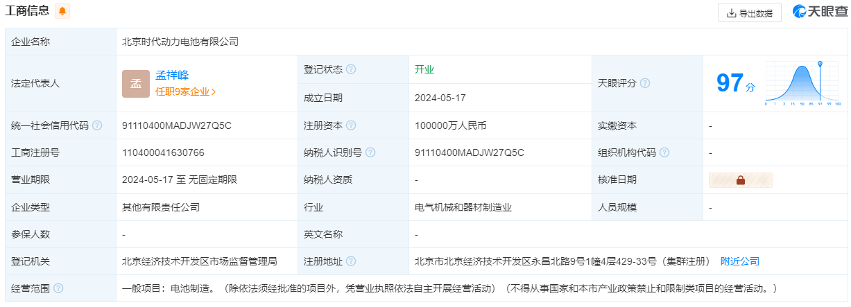 小米、宁德时代等成立动力电池公司,注册资本10亿元