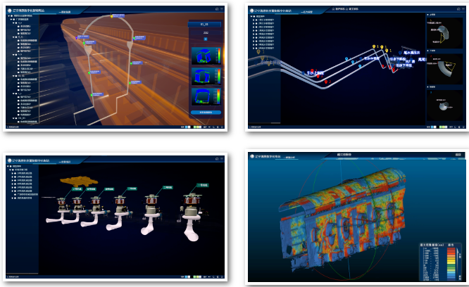 以电站三维模型为载体,利用BIM技术,构建数字孪生电站,智慧采集、分析施工过程数据,实现对电站建设过程的智能化监控。实现了对隐蔽工程施工质量的可视化管理,应用三维激光扫描仪对洞室开挖、支护、衬砌分阶段扫描,分析洞室超欠挖成效并统计衬砌混凝土用量;应用全景相机采集单元工程现场验收影像,完善质量验评资料并实现全景漫游效果。基建期结束后,平台汇集形成一套数字化资产移交使用。