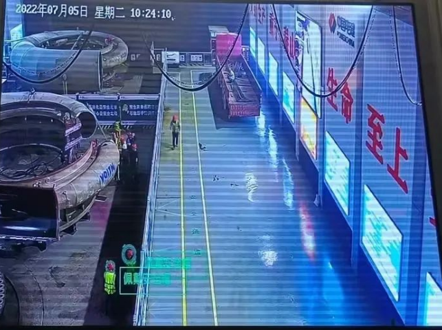 在厂房安装间布置违章行为智能预警系统,动态识别作业人员行为,通过智能系统算法,对不戴安全帽、吸烟、人员摔倒等不安全行为进行预警提示,有效增强了现场安全监管能力和管理水平。