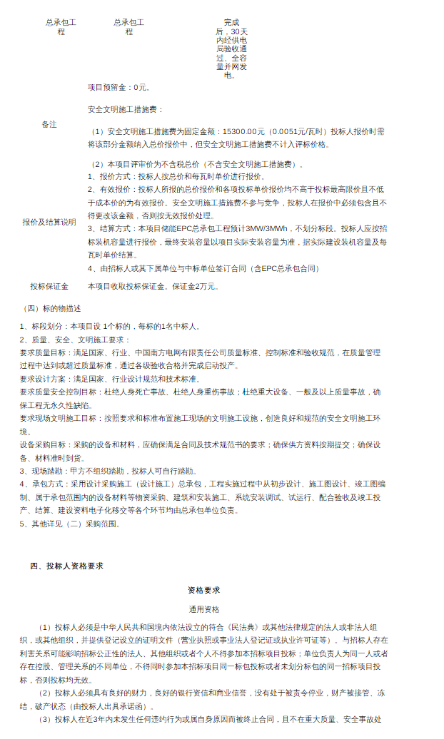 据电力家了解到,5月20日,南网发布揭西五经富镇30MW复合光伏项目配套储能EPC总承包工程(二次招标)招标公告。