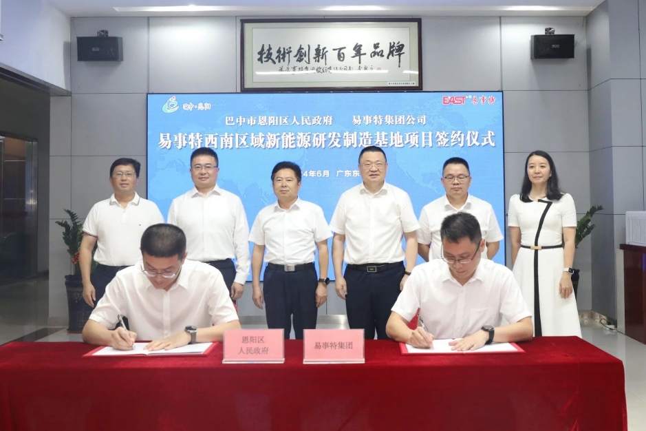 6月23日,四川省巴中市市委常委、文旅融合示范区党工委书记王毅,恩阳区区委书记杨波等一行到访易事特,集团创始人何思模教授热情接待。期间,正式举行易事特西南区域新能源研发制造基地项目签约仪式,标志着双方合作迈入新的阶段,将聚焦在“新能源+储能”领域,着力推动更多风光储充项目高质量落地,全力为当地经济社会发展打造新的增长引擎、创造新的活力。