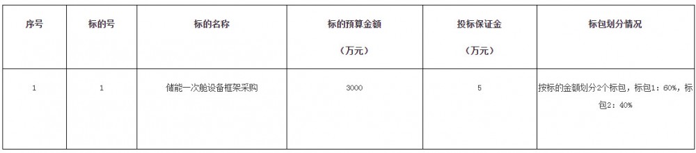 据电力家了解到,6月24日,南方电网发布储能一次舱设备框架采购招标公告。项目预算金额为3000万,按标的金额划分2个标包,标包1为60%,标包2为40%。