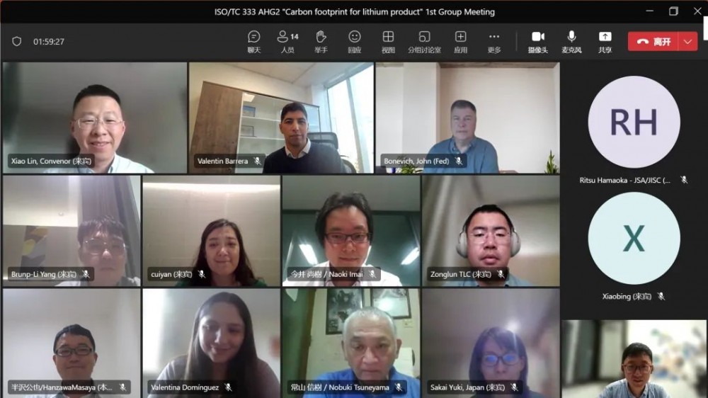 2024年6月19日,ISO/TC 333锂国际标准AHG2锂产品碳足迹特别工作组(Carbon footprint for lithium product)第一次会议通过线上的形式顺利召开,共有来自6个国家的16名代表和专家参与了本次会议。会议的议程围绕工作组目标任务、中国和日本标准草案的介绍讨论、以及下一步工作计划展开。