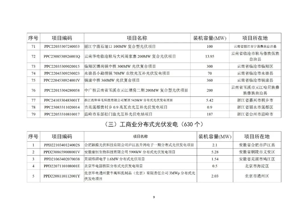 其中风电项目45个共3558.65MW,光伏项目79个共6810.155MW,分布式光伏项目630个共717.918MW,生物质发电项目9个共229.94MW。