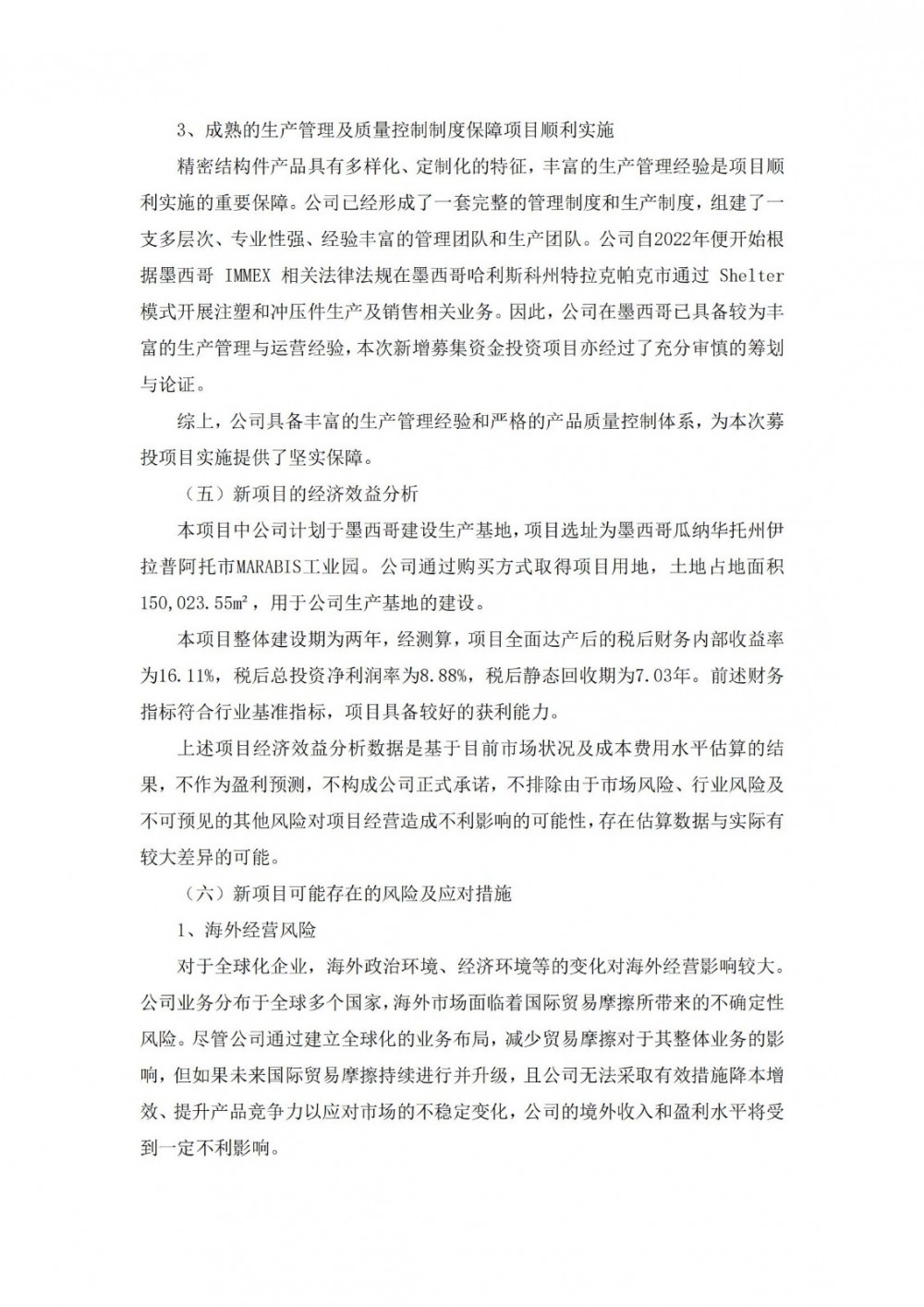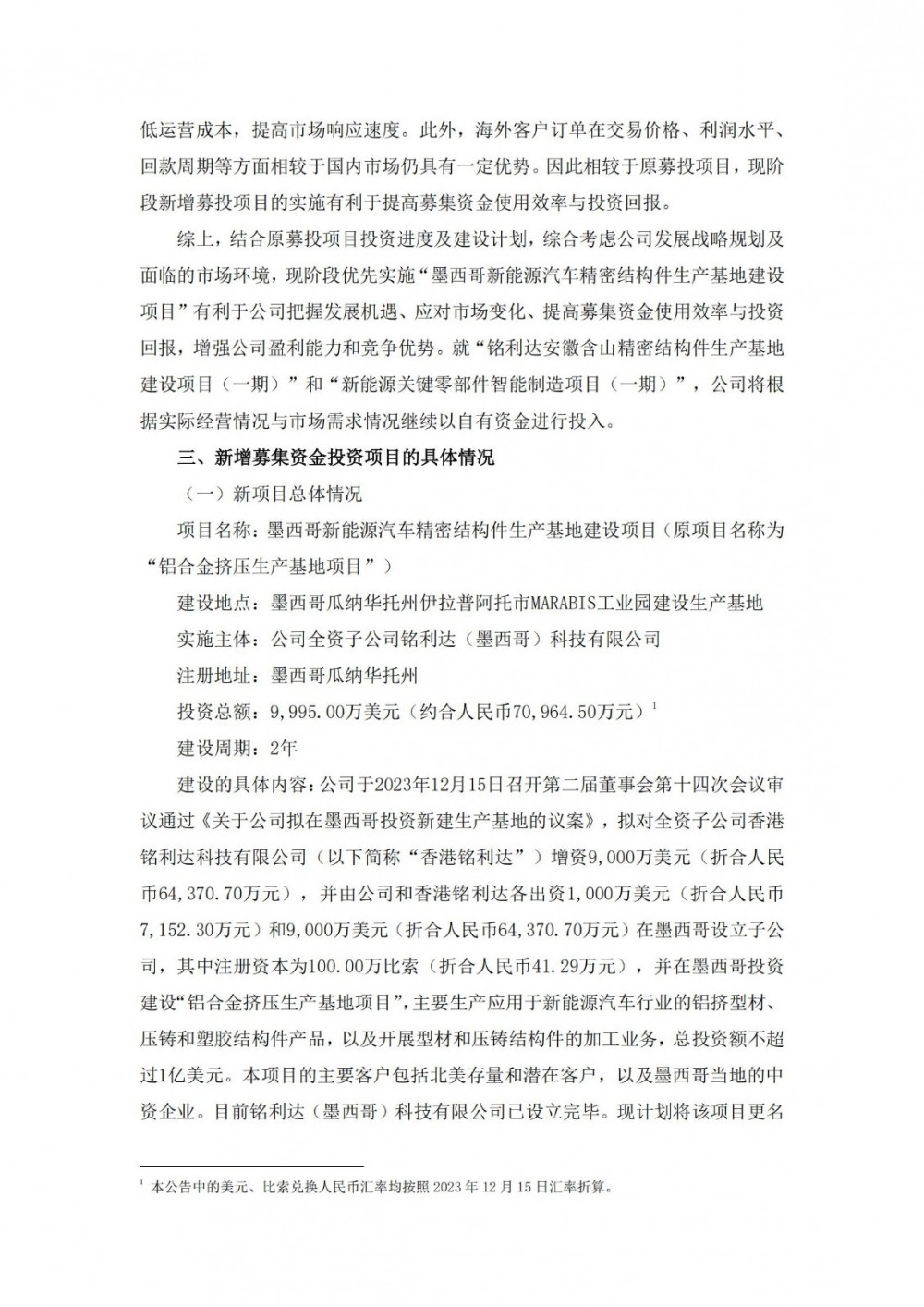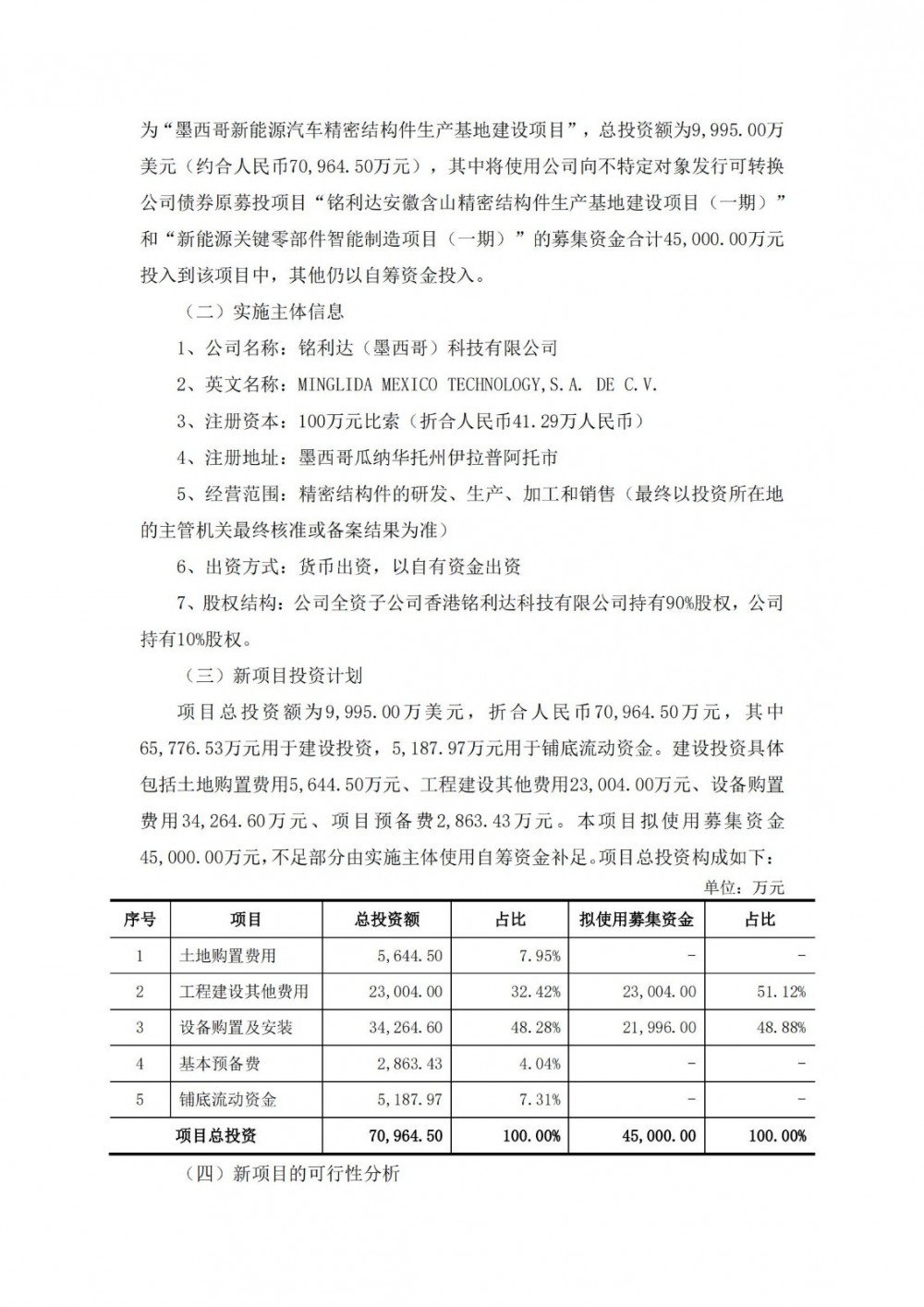 因此铭利达将两个募投项目调整为墨西哥新能源汽车精密结构件生产基地建设项目。