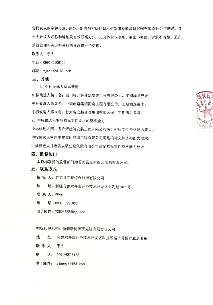 根据公告,第一中标候选人为四川省升辉建筑安装工程有限公司,第二中标候选人为中国电建集团河南工程有限公司,第三中标候选人为甘肃省安装建设集团有限公司。