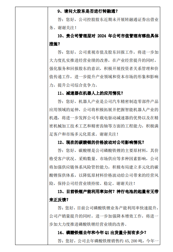 富临精工表示,二季度公司磷酸铁锂业务产能利用率快速提升,公司产销量提升的同时,进一步加强降本增效工作,将进一步加大力度推进磷酸铁锂经营业绩的改善。