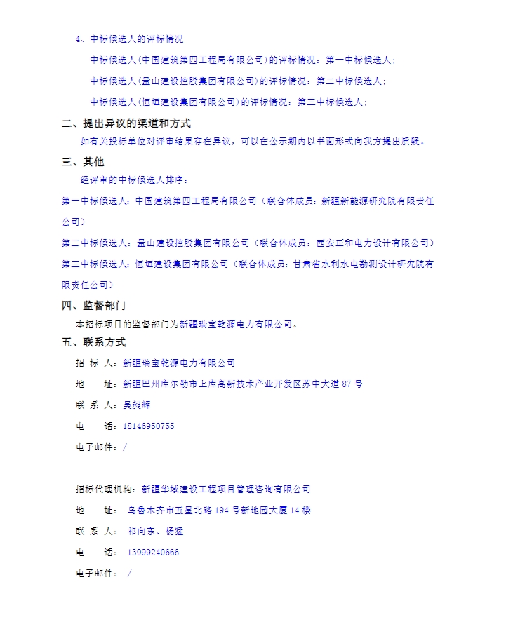 第一中标候选人为中国建筑第四工程局有限公司,投标报价为207656.693620万元;第二中标候选人为量山建设控股集团有限公司,投标报价为205748.271684万元;第三中标候选人为恒垣建设集团有限公司,投标报价为208610.904588万元。