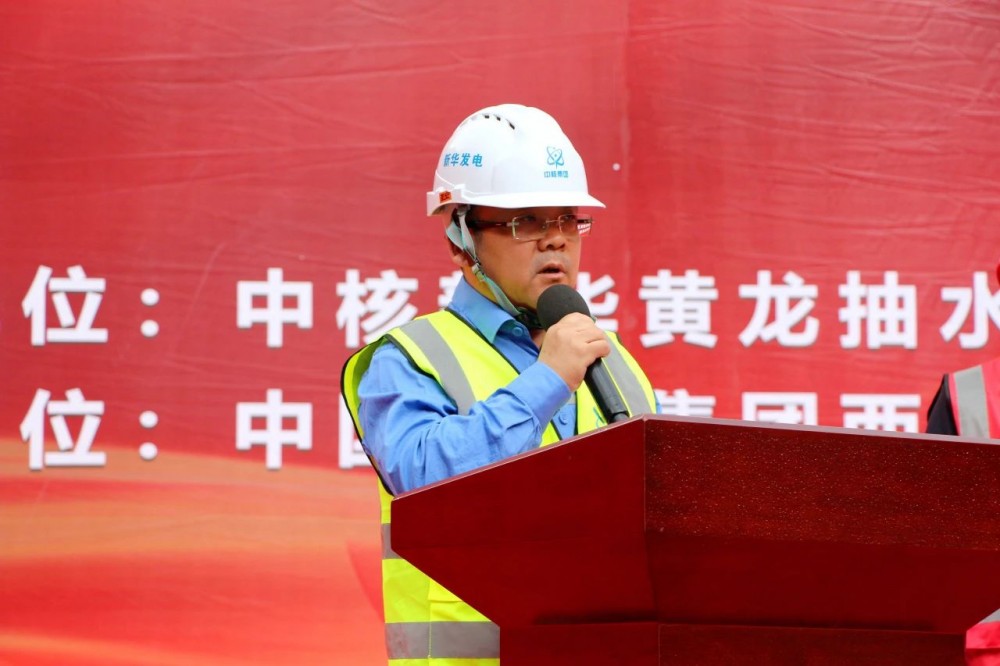 中核新华黄龙公司党委书记、执行董事、总经理鲜世雄对出席仪式的各位来宾表示热烈欢迎,介绍了黄龙抽水蓄能电站的重要战略背景和建设意义。并希望中国水电四局能够发挥抽蓄领域建设的专业优势,确保工程安全高效推进,为陇东能源基地建设贡献力量。