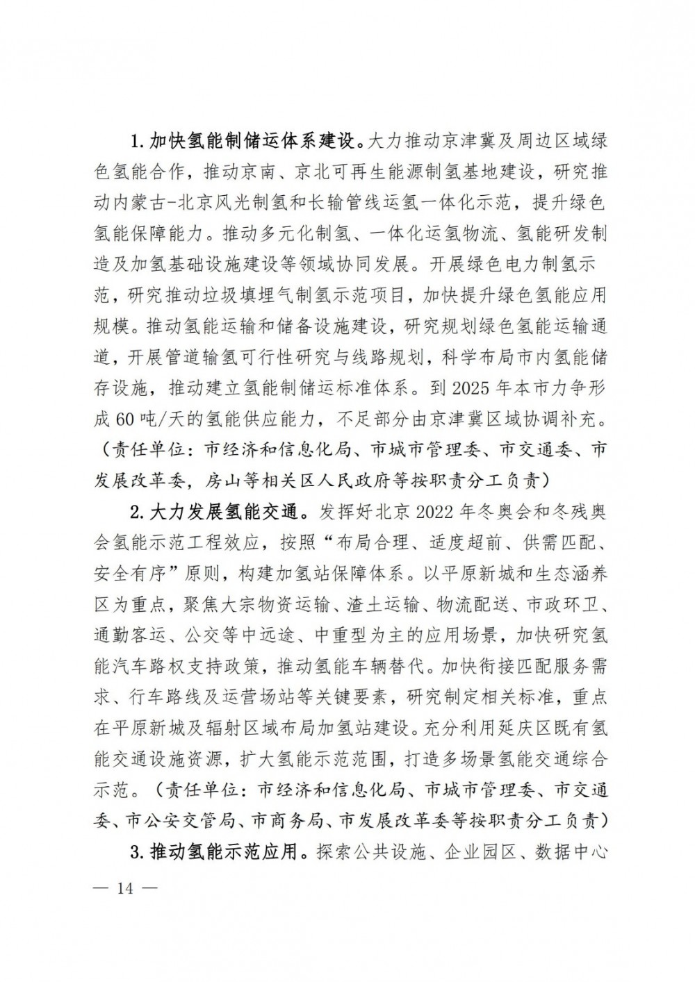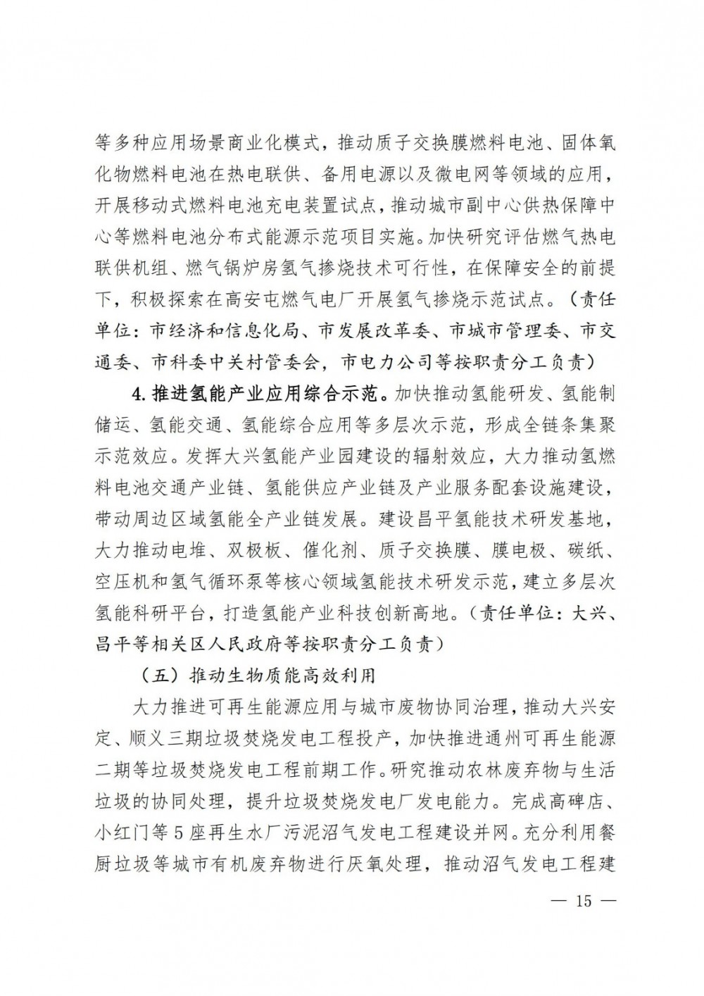 聚焦北京经济技术开发区、未来科学城“能源谷”,加快推动超低风速风机关键零部件、智能电网、建筑一体化建材等高精尖产业布局。以大兴国际氢能示范区为依托,提升燃料电池电堆及相关零部件研发与生产能力,打造北京氢能高端制造集群。以中关村房山园、昌平区为载体,重点推动新型储能系统集成等技术突破,打造北京新型储能产业基地。