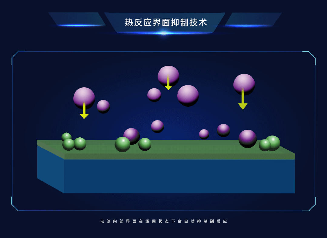 安全方面:兰钧针对电池安全最重要的反应界面,开发了特有的界面热抑制体系。兰钧电池内部界面在滥用状态下会自动抑制副反应,阻止了链式反应。