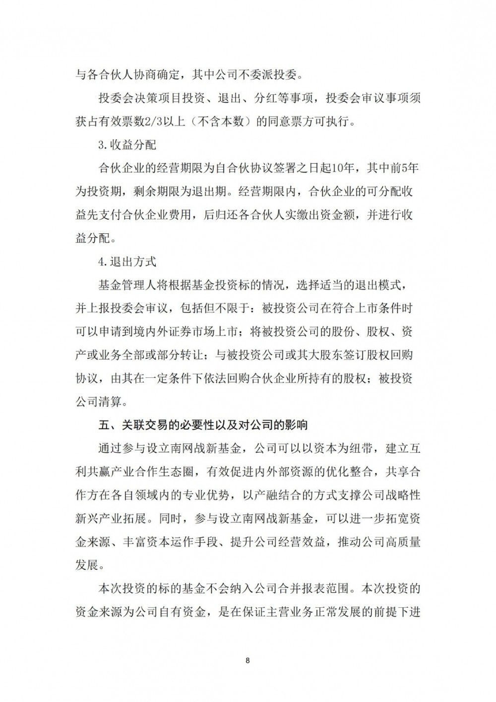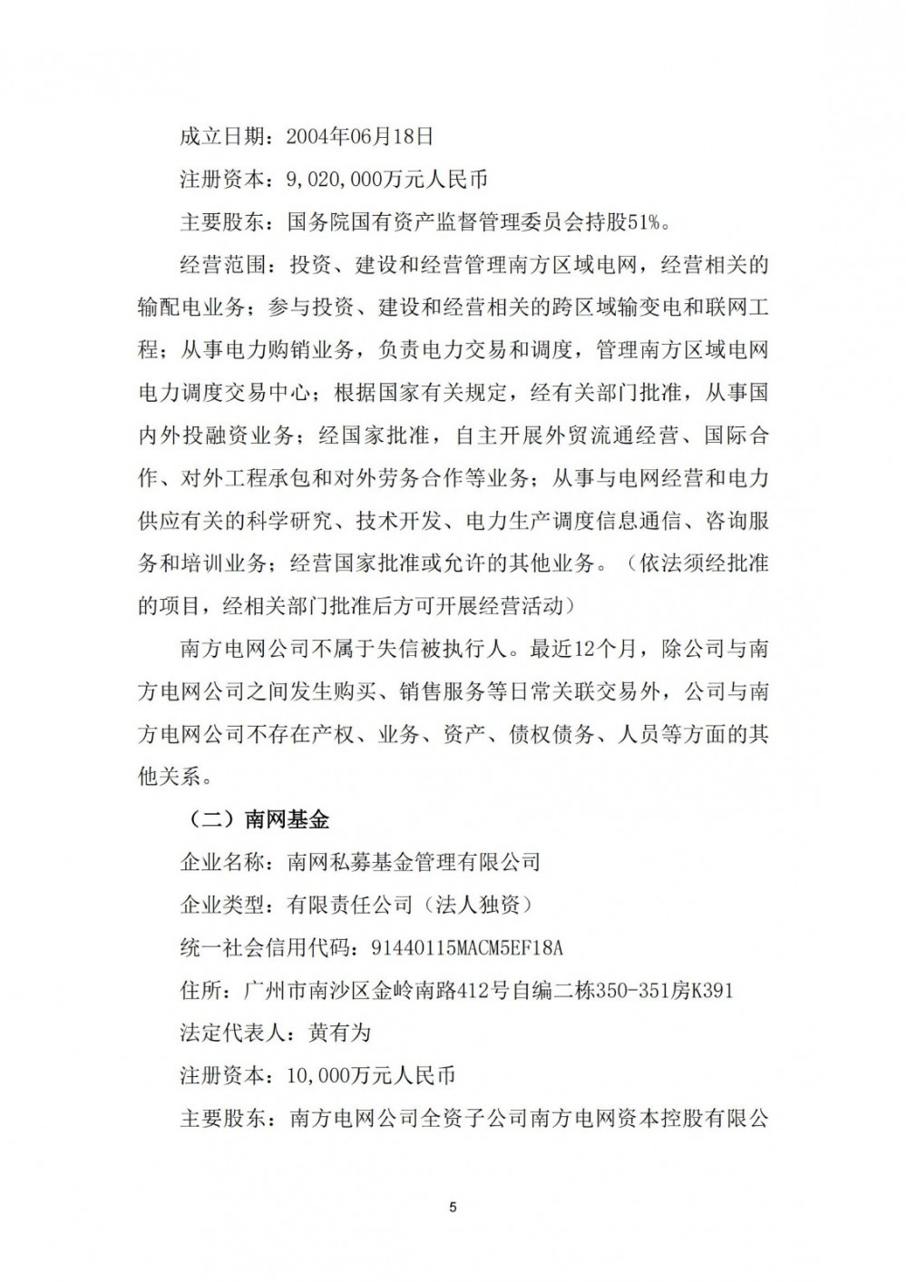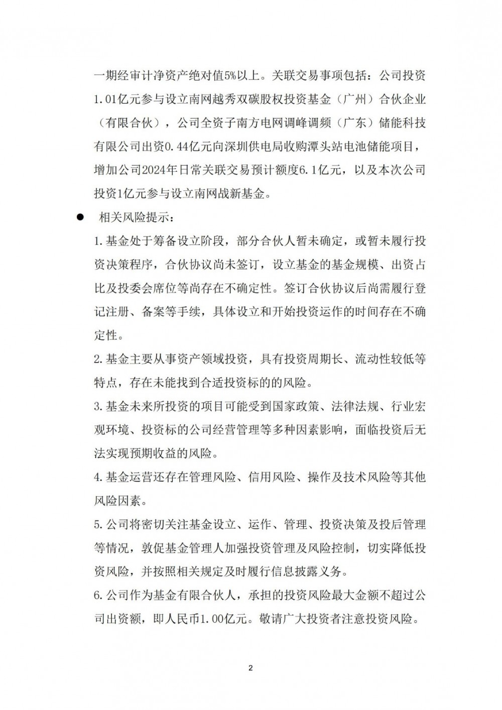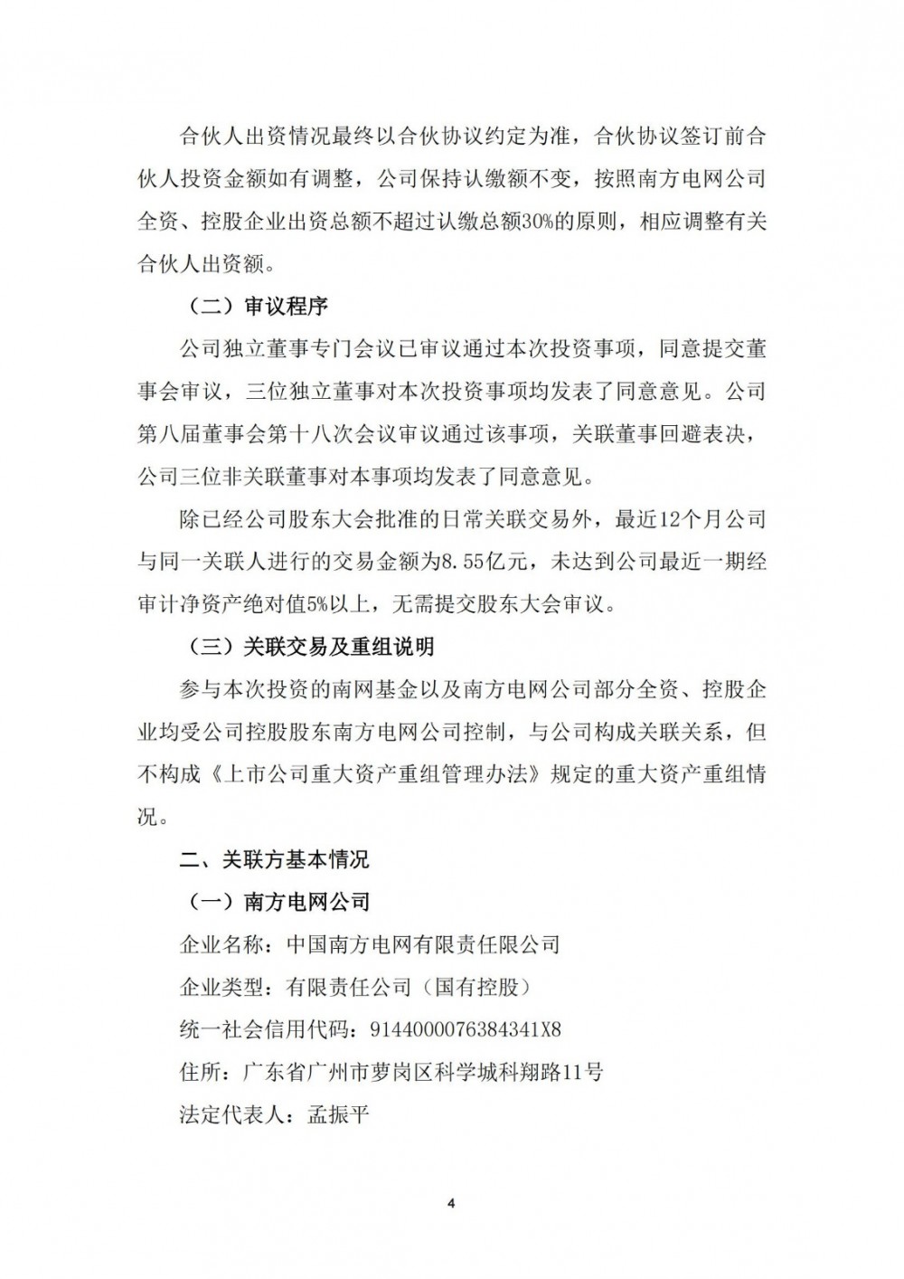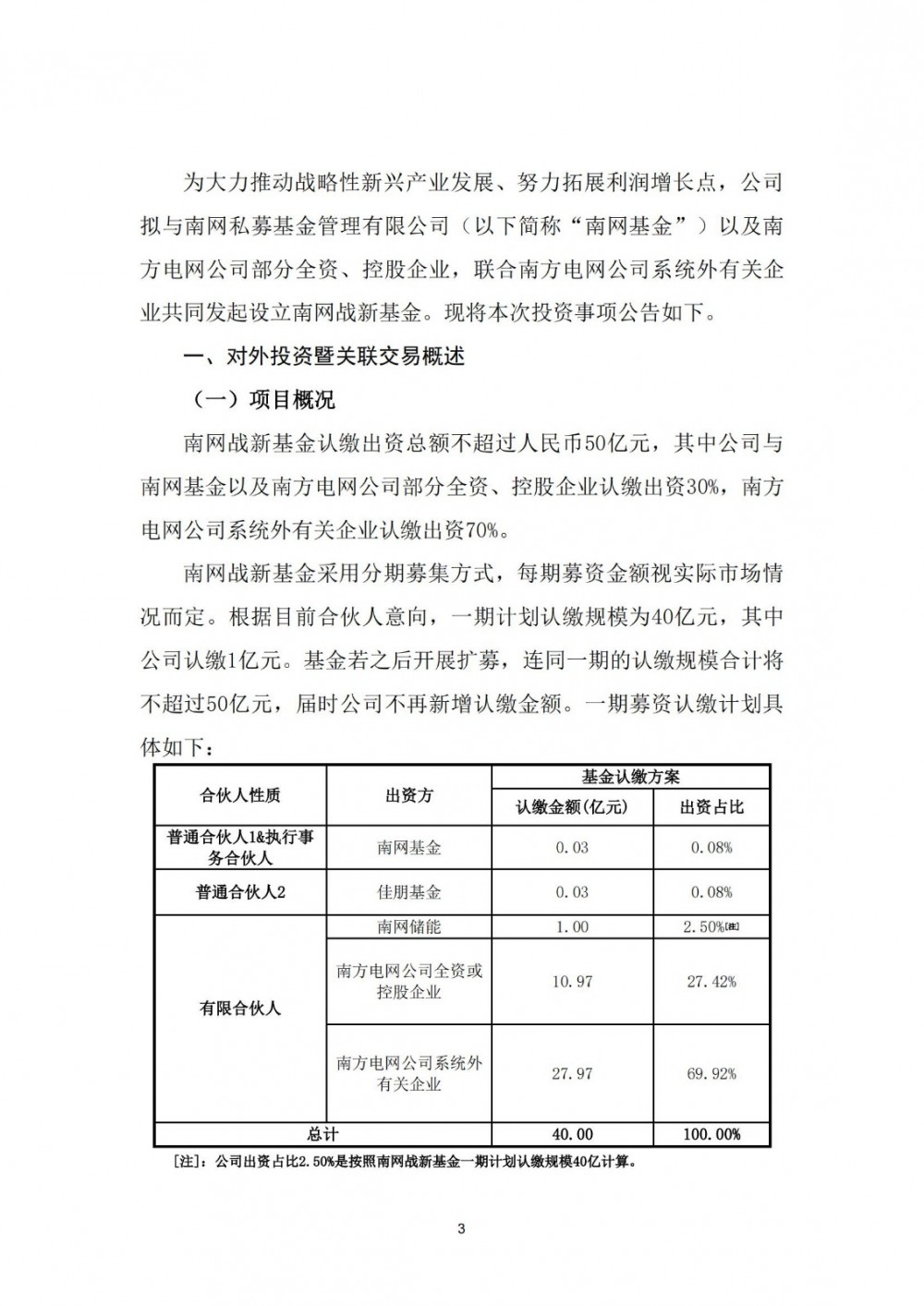 南网战新基金认缴出资总额不超过人民币50亿元,其中公司与南网基金以及南方电网公司部分全资、控股企业认缴出资30%,南方电网公司系统外有关企业认缴出资70%。