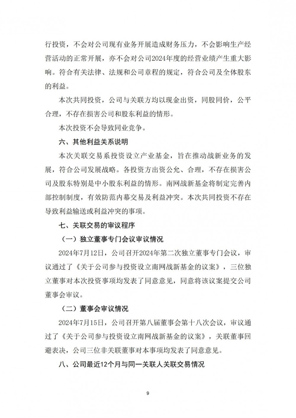 南网储能表示,本次关联交易系投资设立产业基金,旨在推动战新业务的发展,符合公司发展战略。各投资方出资公允、合理,不存在损害公司及股东特别是中小股东利益的情形。南网战新基金将制定完善内部控制制度,有效防范内幕交易及利益冲突。本次共同投资不存在导致利益输送或利益冲突的事项。