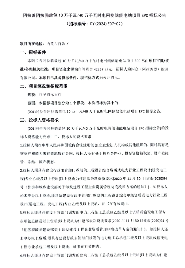 发布时间:2024-07-16 人气: 来源:内蒙古招标投标网 关键词:电网侧储能电站,储能市场,独立储能电站,
