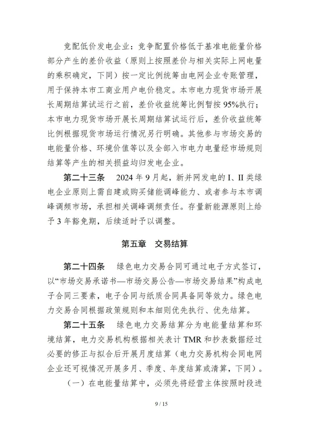 文件还指出,2024年9月起,新并网发电的I、II类绿电企业原则上需自建或购买储能调峰能力、或者参与本市调峰调频市场,承担相关调峰调频责任。存量新能源原则上给予3年豁免期,后续适时予以调整。