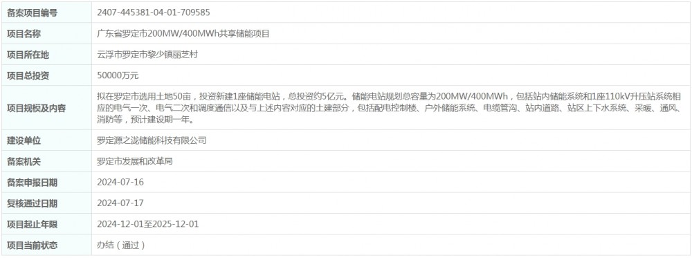 发布时间:2024-07-17 人气: 来源:广东省投资项目在线审批监管平台 关键词:共享储能项目,储能电站,储能设施,