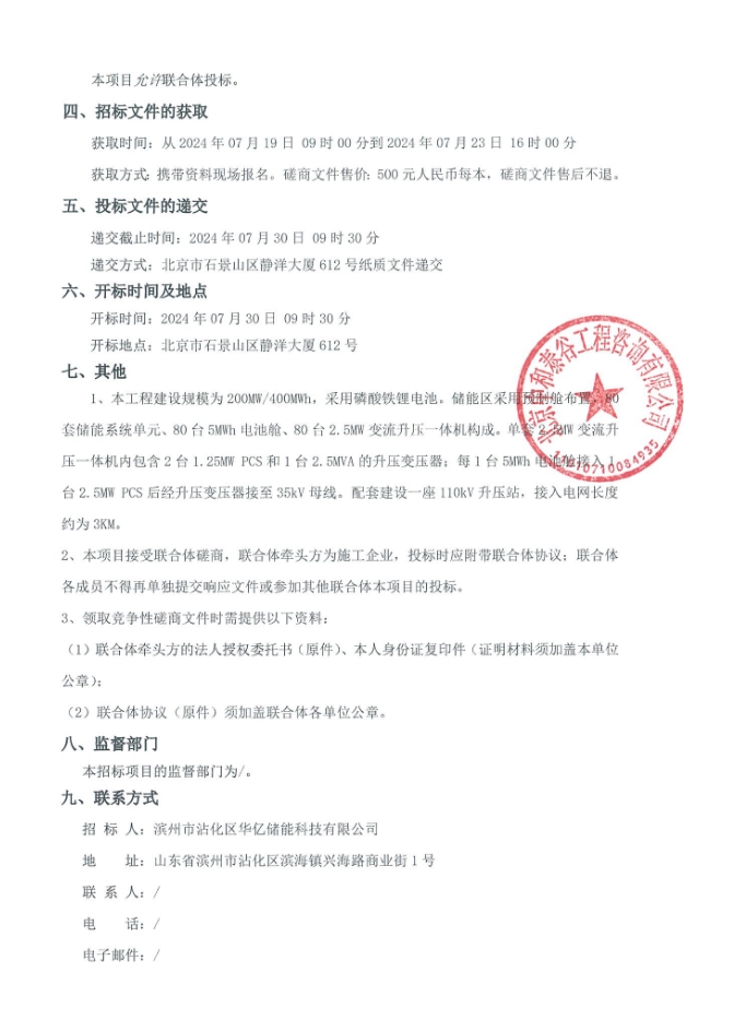 7月18日,沾化滨海镇200MW/400MWh共享储能项目EPC工程竞争性磋商公告发布。