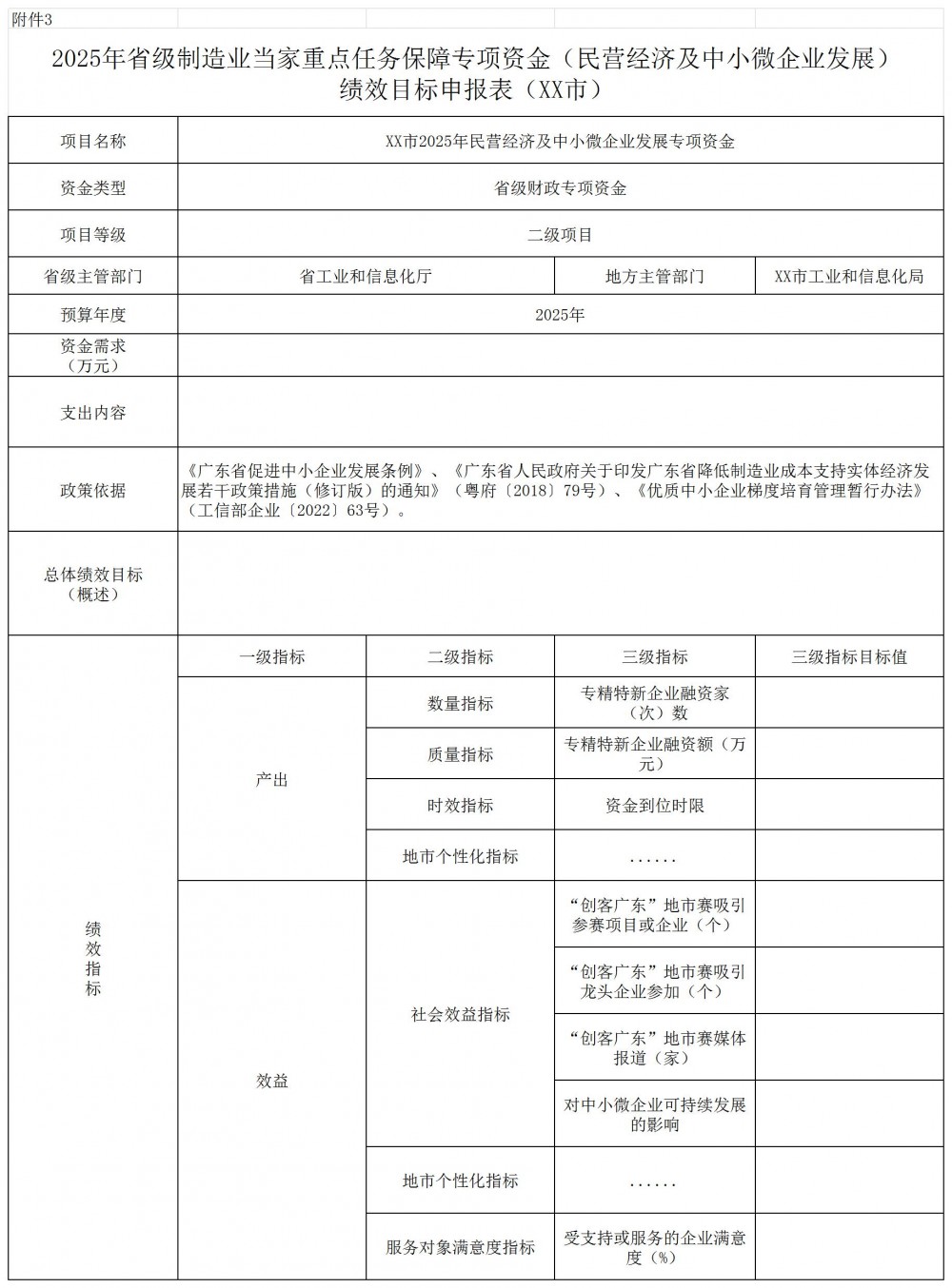 3. 2025年民营经济及中小微企业发展专项资金绩效目标申报表