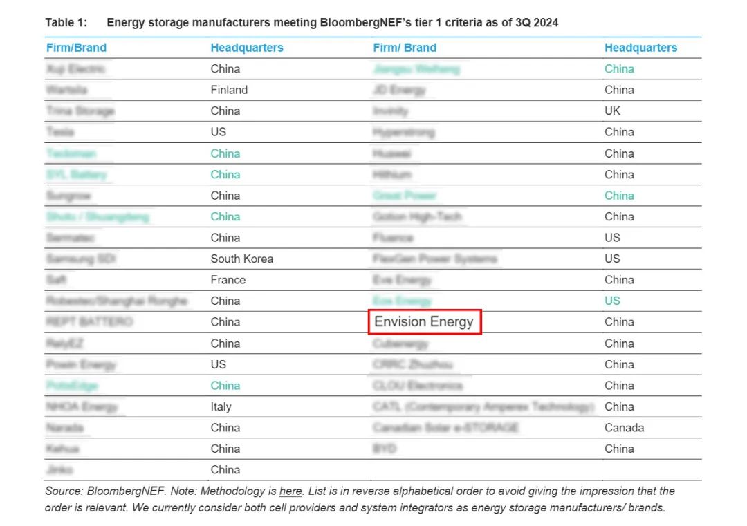 BNEF是全球新能源领域最具公信力的行业研究机构之一。BNEF全球储能厂商 Tier 1名单在全球范围内受到广泛认可,该名单基于BNEF储能项目数据库中数百个储能品牌进行充分考察与严格筛选。