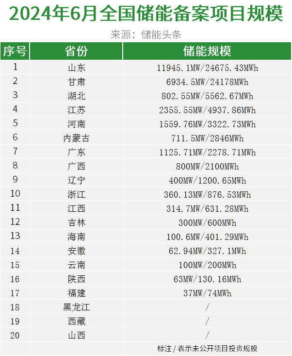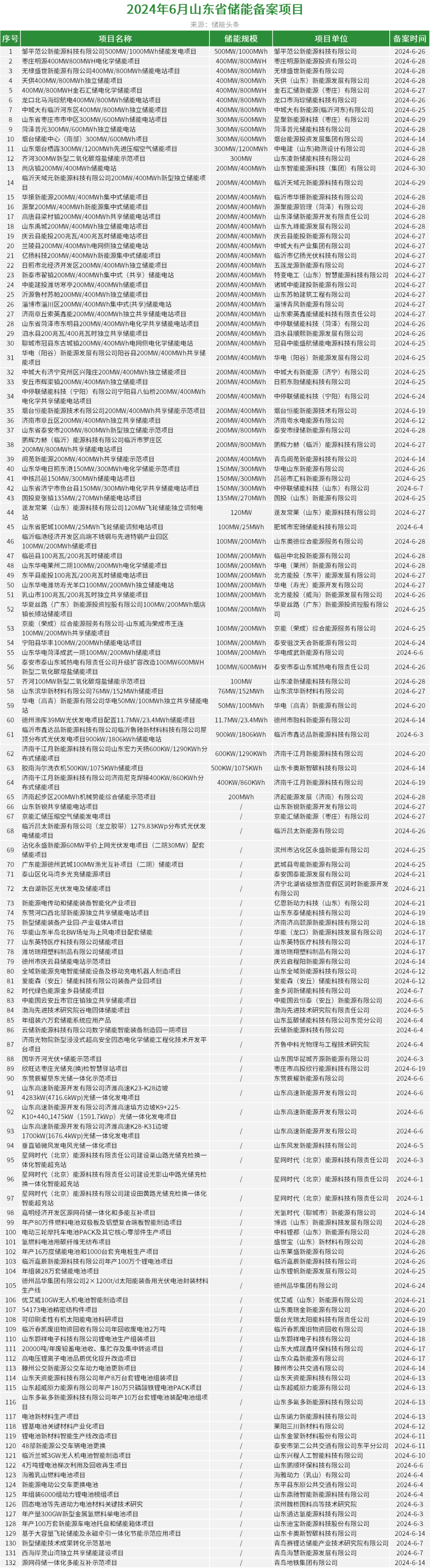 项目清单!6月份全国19省1535个储能项目备案汇总