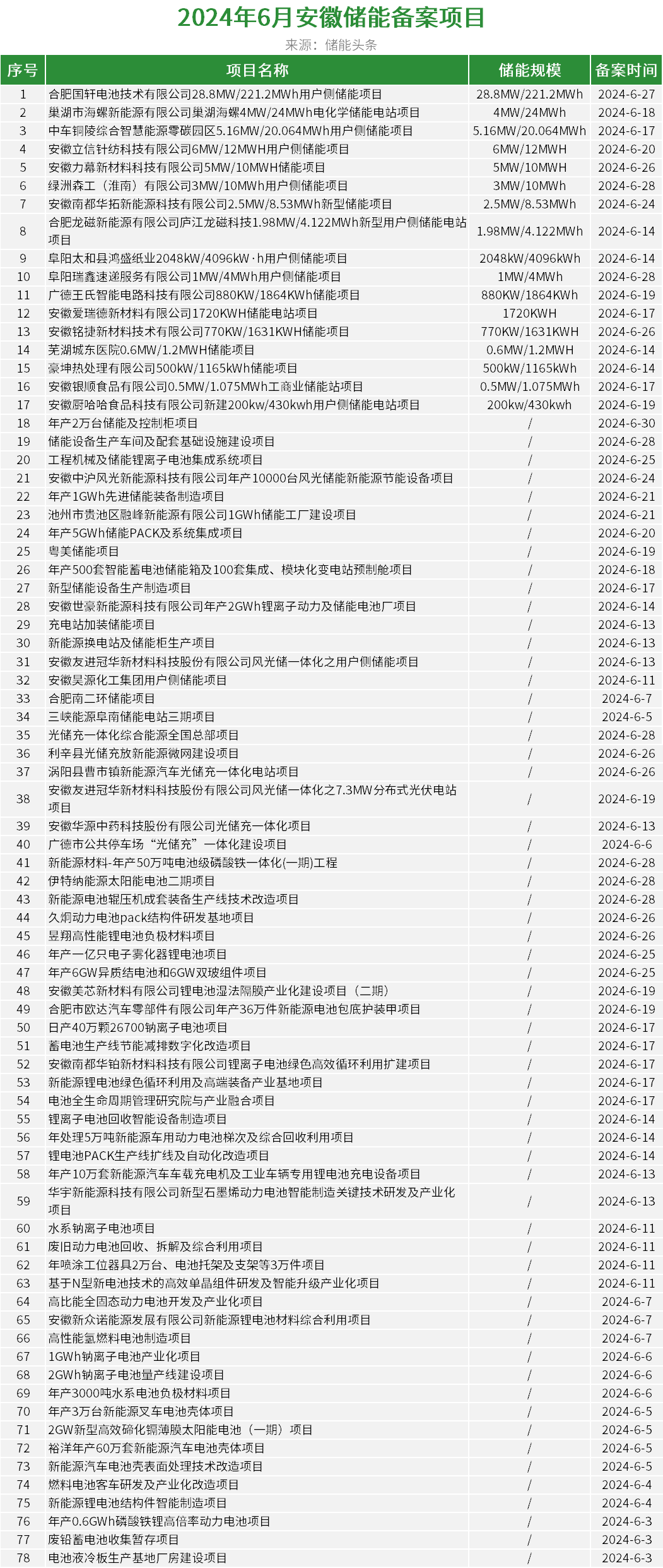 据统计,陕西省6月备案储能项目10个,总投资27.18亿元。