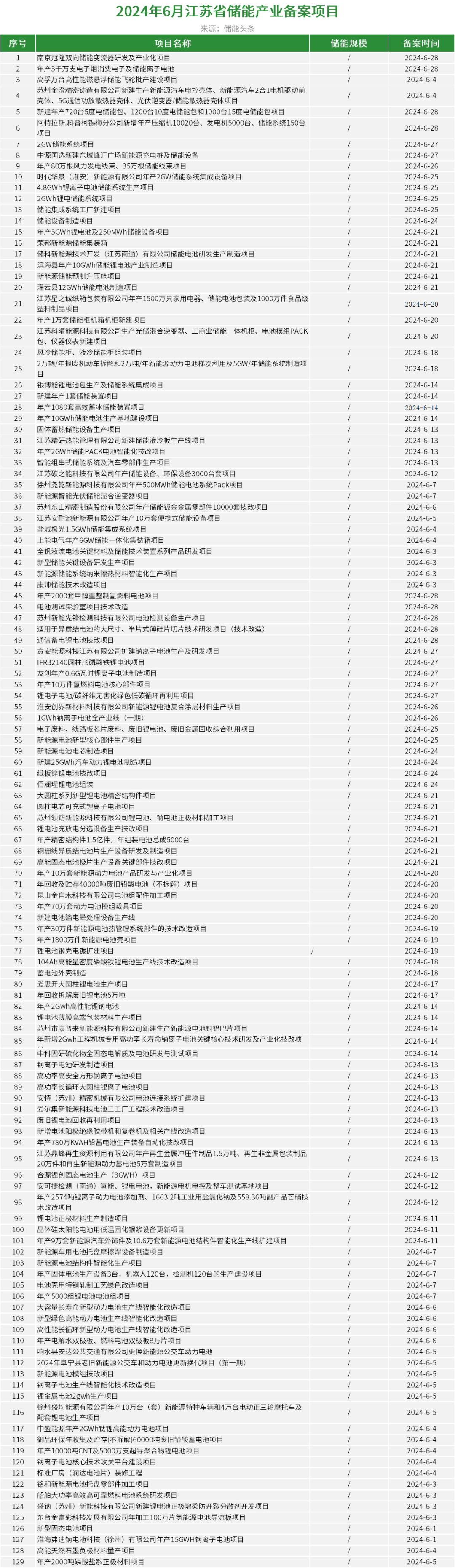 吉林6月备案储能项目7个,有储能项目、电池材料项目等产业项目。