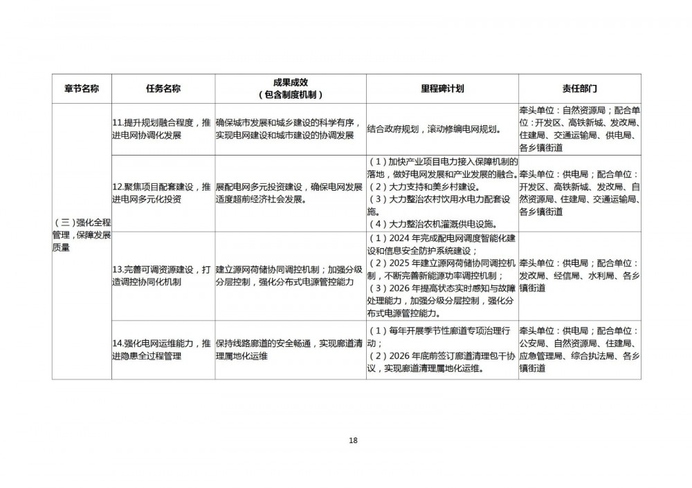 (一)建立健全工作机制。建立发改、住建、自然资源、供电等相关部门、各类电力企业、新业态项目单位以及重要电力用户协同合作的工作机制,常态化做好重点任务跟踪督办,全面落实配电网高质量发展各项要求。