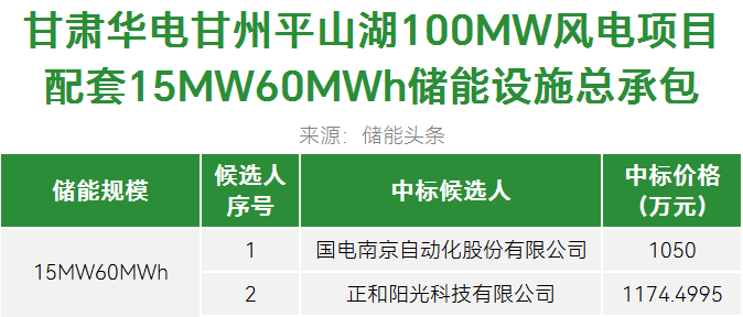 甘肃华电甘州平山湖100MW风电项目配套15MW60MWh储能设施总承包