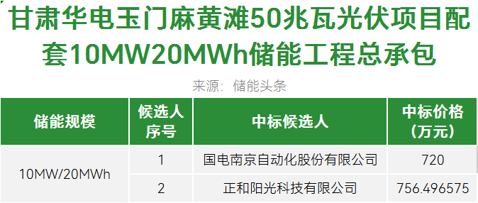甘肃华电玉门麻黄滩50兆瓦光伏项目配套10MW20MWh储能工程总承包