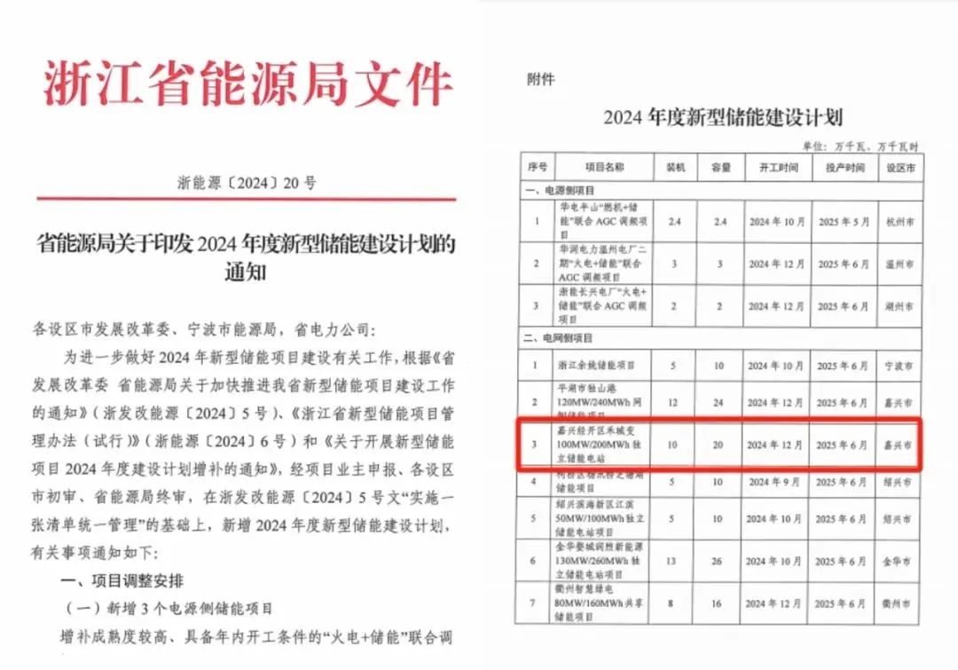 8月15日,长三角储能科技产业集团收到《浙江省能源局关于印发2024年度新型储能建设计划通知》(浙能源〔2024〕20号):长三角储能科技产业集团成员企业长三角综合能源(嘉兴)有限公司(以下简称“长三角综能”)申报的“嘉兴经开区禾城变100MW/200MWh独立储能电站”项目正式纳入浙江省2024年新型储能建设计划。此通知的发布,标志着该项目已经正式具备获批实施落地条件。