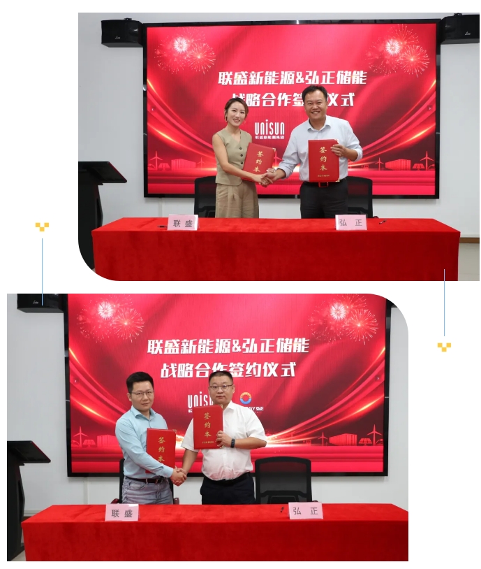 8月19日,弘正储能(上海)能源科技有限公司与联盛新能源集团在南京达成战略合作。弘正储能创始人董事长封安华、副总经理张鹏,营销副总经理孙厚强,联盛新能源董事长何旖莎,总经理王宇,采购总监云冲等领导进行座谈交流并签订战略合作协议。