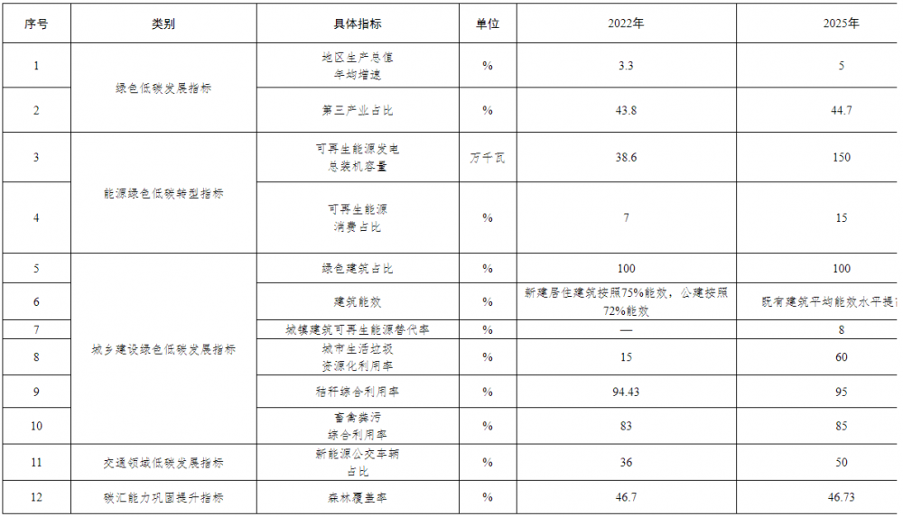 黑河市国家碳达峰试点城市建设指标