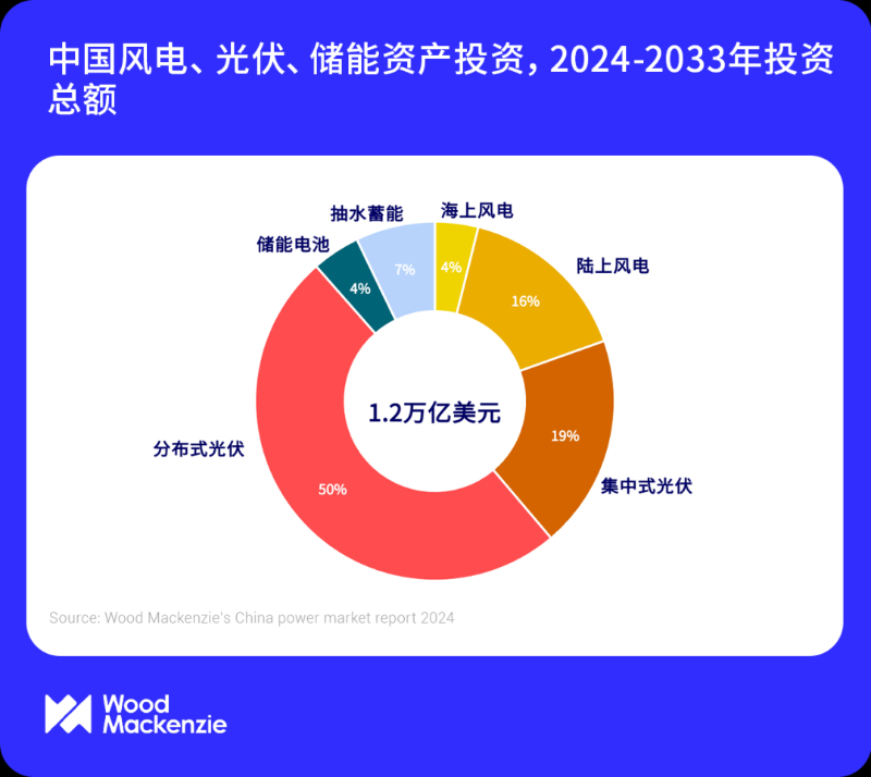 据伍德麦肯兹预测,到2030年,中国累计发电装机容量将从2023年的2,934GW增至5,716GW。