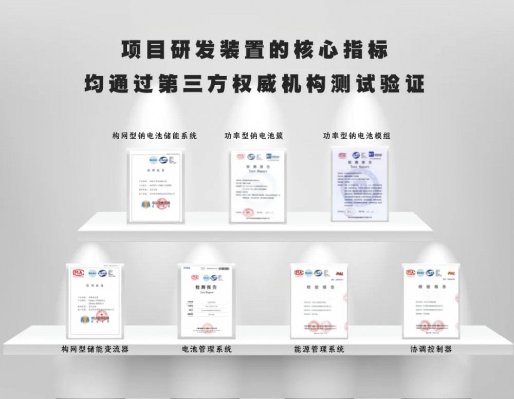 由南方电网储能股份有限公司储能科研院、杭州煦达新能源科技有限公司等多家单位联合研制的“支撑弱电网的40MWh高低倍率复合运行构网型钠离子电池储能系统”,经过资料审查、项目汇报、质询答疑和评价鉴定等环节,由中国科学院院士程时杰、中国工程院院士陈立泉领衔的专家组一致认为,该产品属于国内外率先实现重大技术突破、拥有自主知识产权的能源领域新型储能方向关键技术装备,性能指标达到国际领先水平。